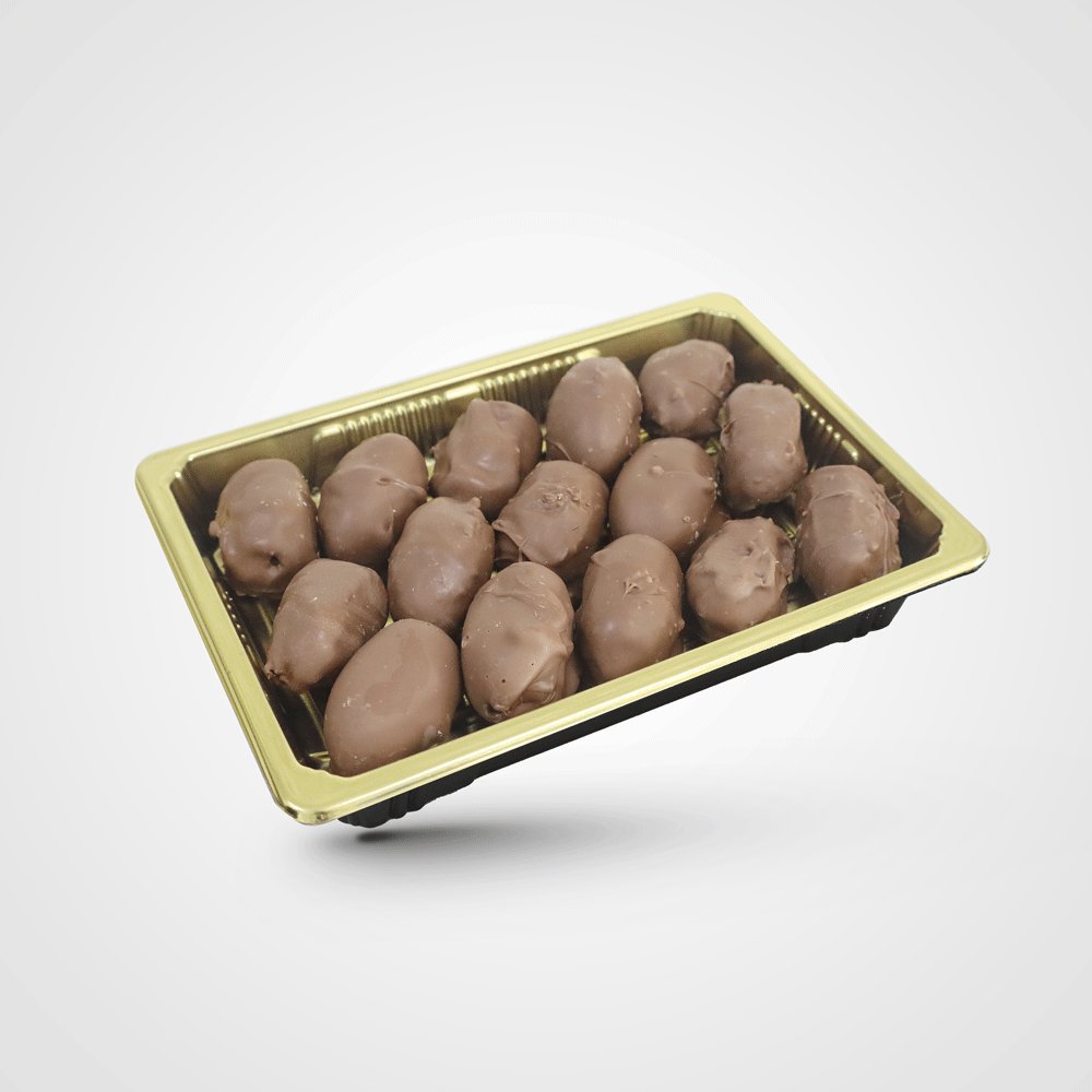 Dates with Toasted Almonds Covered in Milk Chocolate
